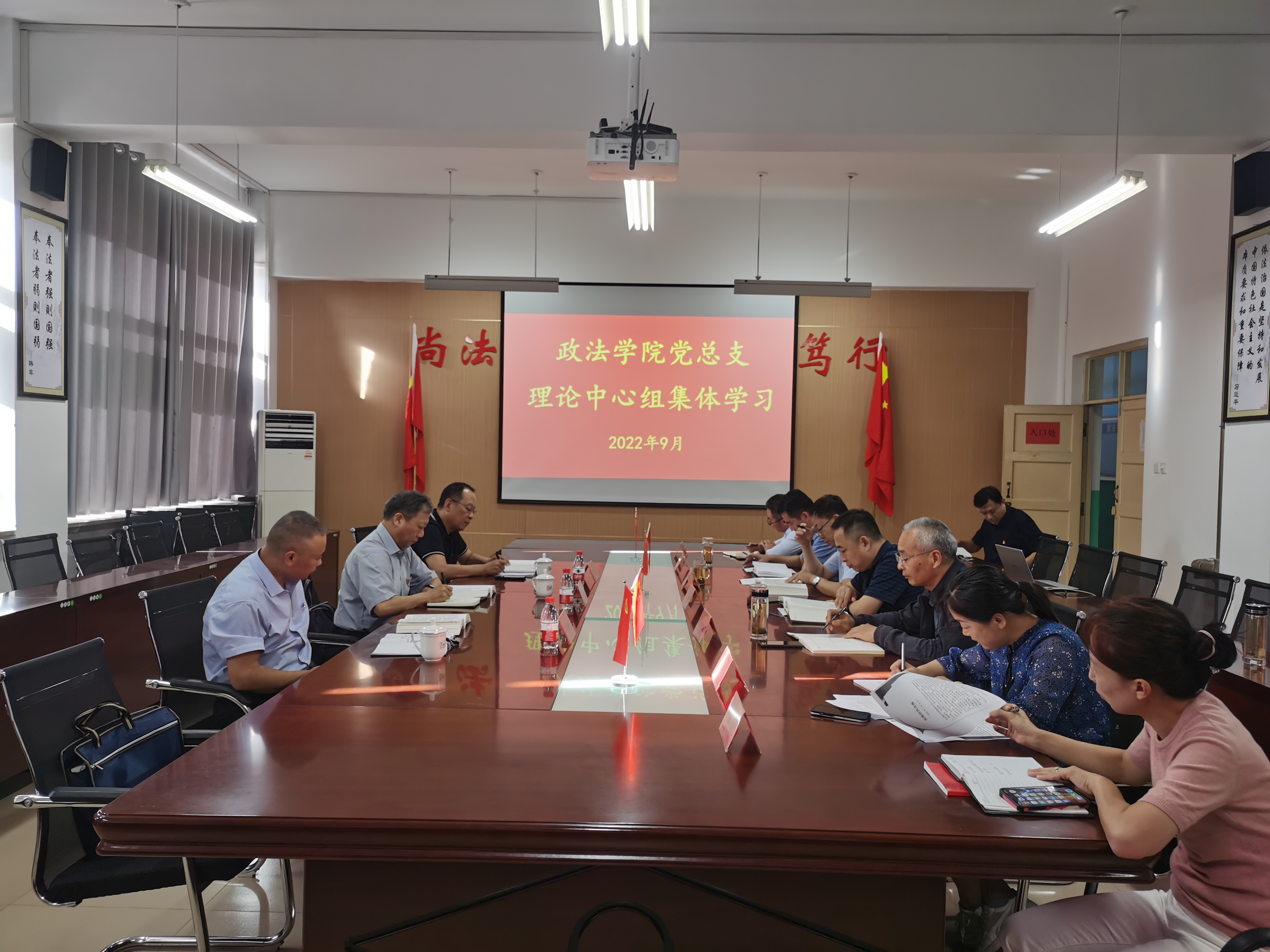 9月20日下午,政法学院党总支理论学习中心组在8314会议室进行集体学习。党总支书记曹兴波主持集体学习,理论学习中心组成员参加,学校党委委员、组织部长李连成,马克思主义学院党总支书记吴明列席旁听。