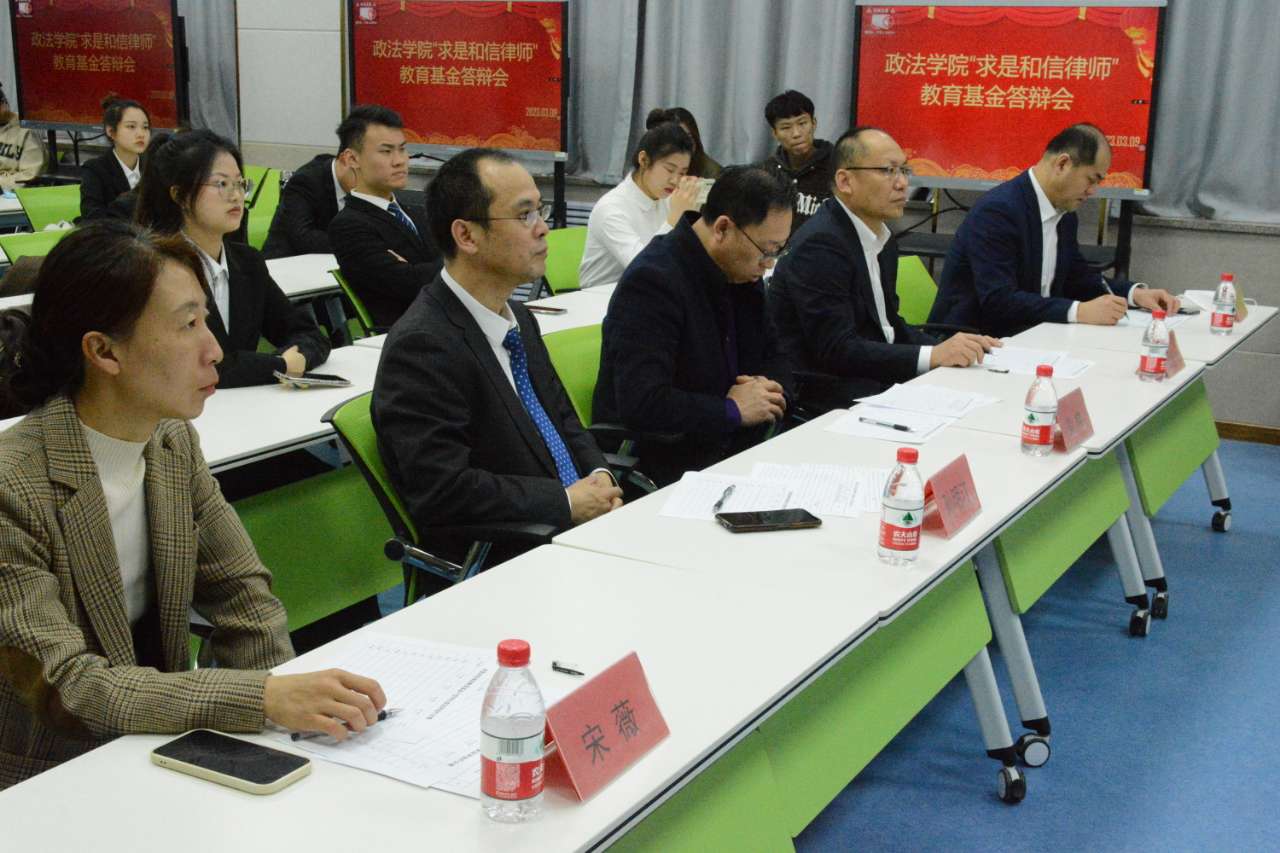 2023年3月9日上午,我院于人合楼8318智慧教室召开第六届“求是和信律师”教育基金学生“双十佳”答辩会。本次答辩会由山东求是和信律师事务所刘世伟、孙明江、孟令华三位律师,我院党总支副书记刘伟、团总支(学生工作办公室)书记(主任)宋薇担任评委,部分学生及学生干部代表作为观众参加本次答辩会。
