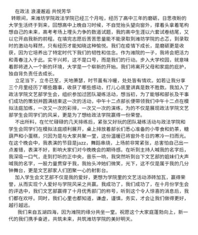霜降将至,美好正当时。在这个万物都即将进入休眠状态的时候,唯独爱,在肆意蔓延,温暖着我们的心灵。2022年11月10日萤光辅导站号召同学们以征文的方式分享与政法学院的温暖的故事,政法学子一起写下对政法学院那些细腻又温柔的语句。前期进行活动策划,宣传到各个班级群中进行活动预热。活动反响良好,参与人员达146人,收到优秀作品86份。