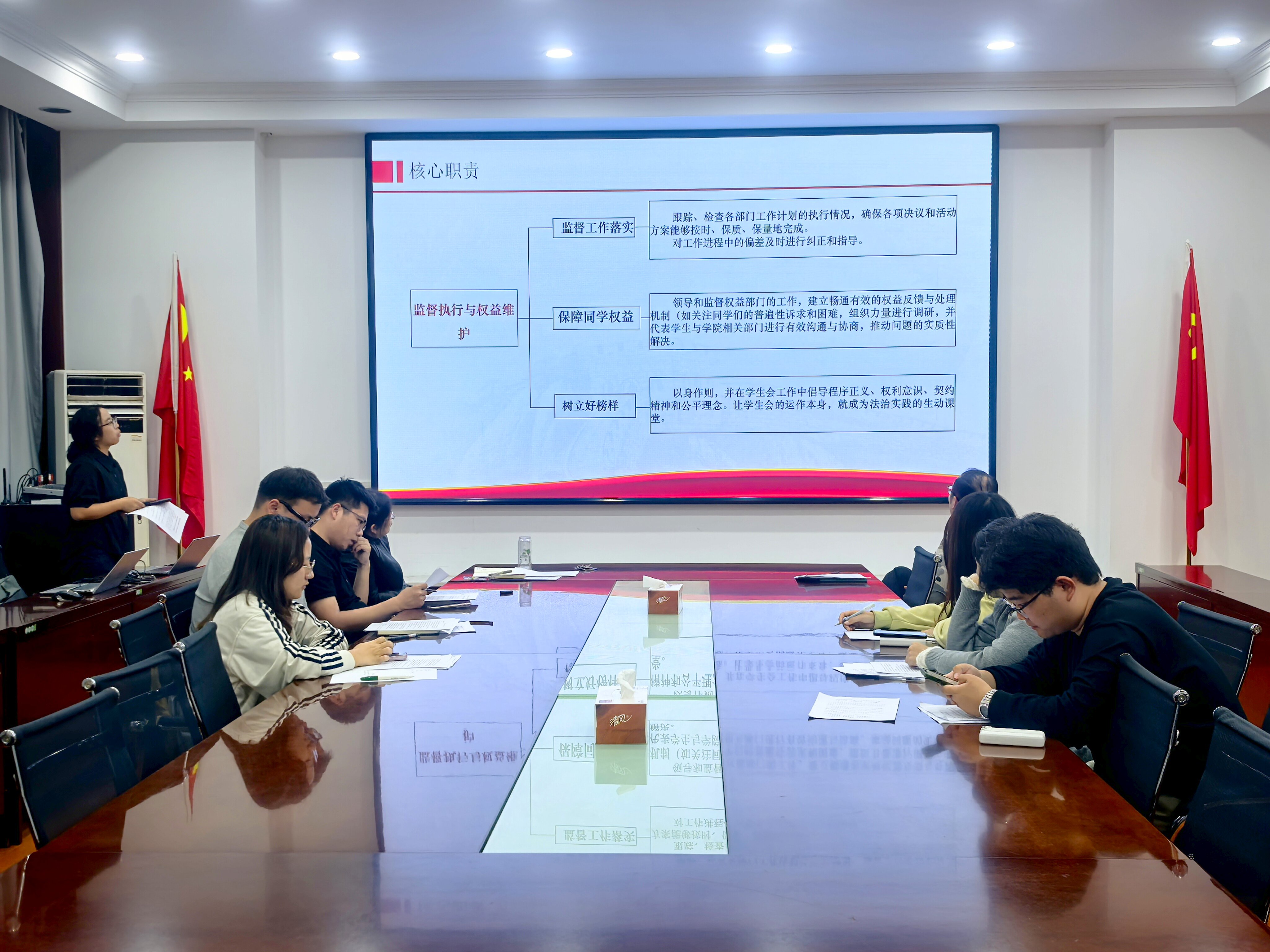 此次会议不仅为团学组织各部门搭建了经验交流、智慧共享的平台,更有效打通了部门协作的“堵点”、凝聚了干事创业的“合力”,为后续工作开展明晰了路径、注入了动力。下一步,全体学生骨干将以更饱满的热情、更务实的作风投身团学工作,为学院团学事业高质量发展书写新篇章、贡献新力量。