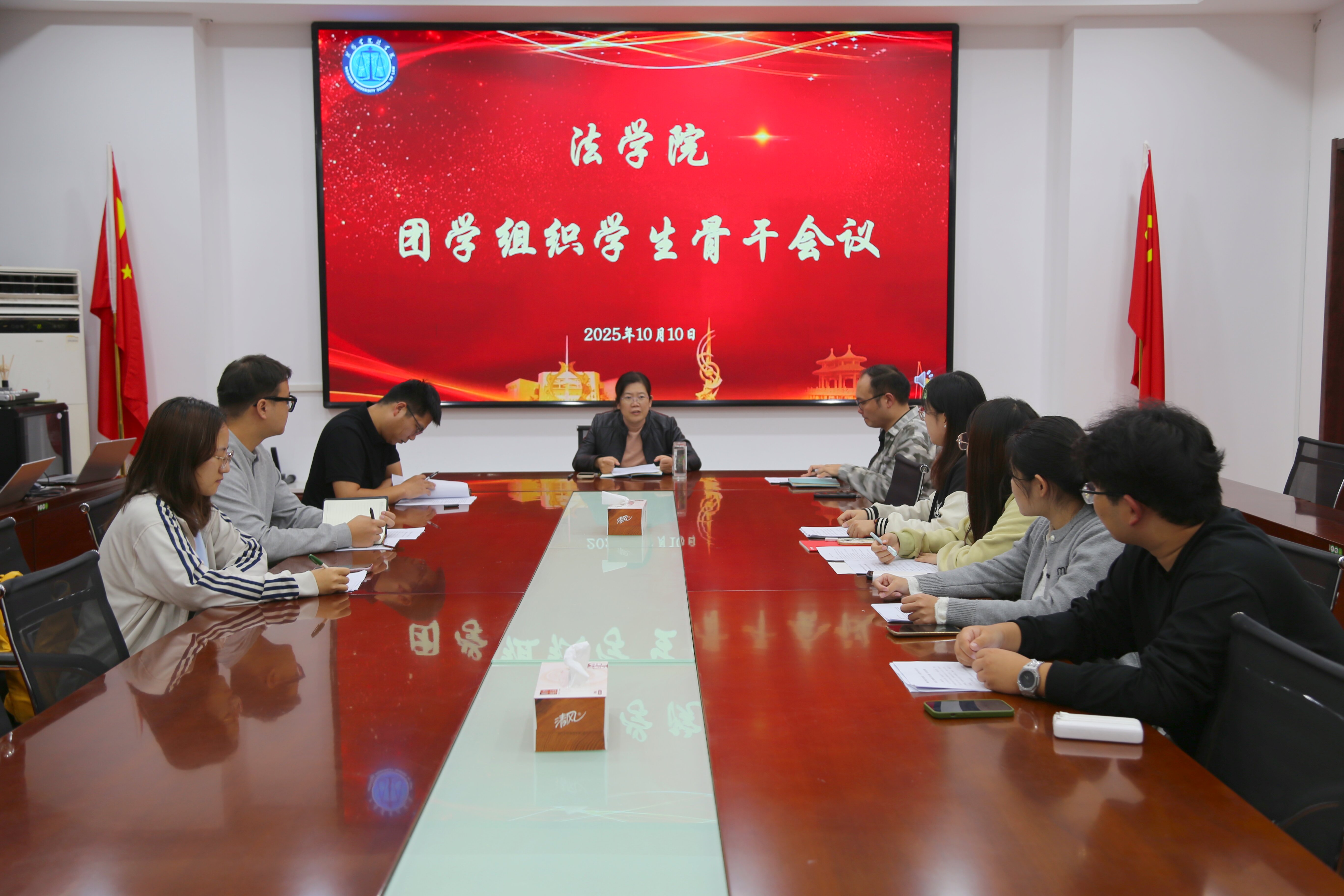 为锚定团学工作方向、强化部门协同效能、全面提升工作质效,10月10日,我院于8314会议室召开团学组织学生骨干会议。学院党委副书记王秀慧出席会议并作指导讲话,全体辅导员参会。