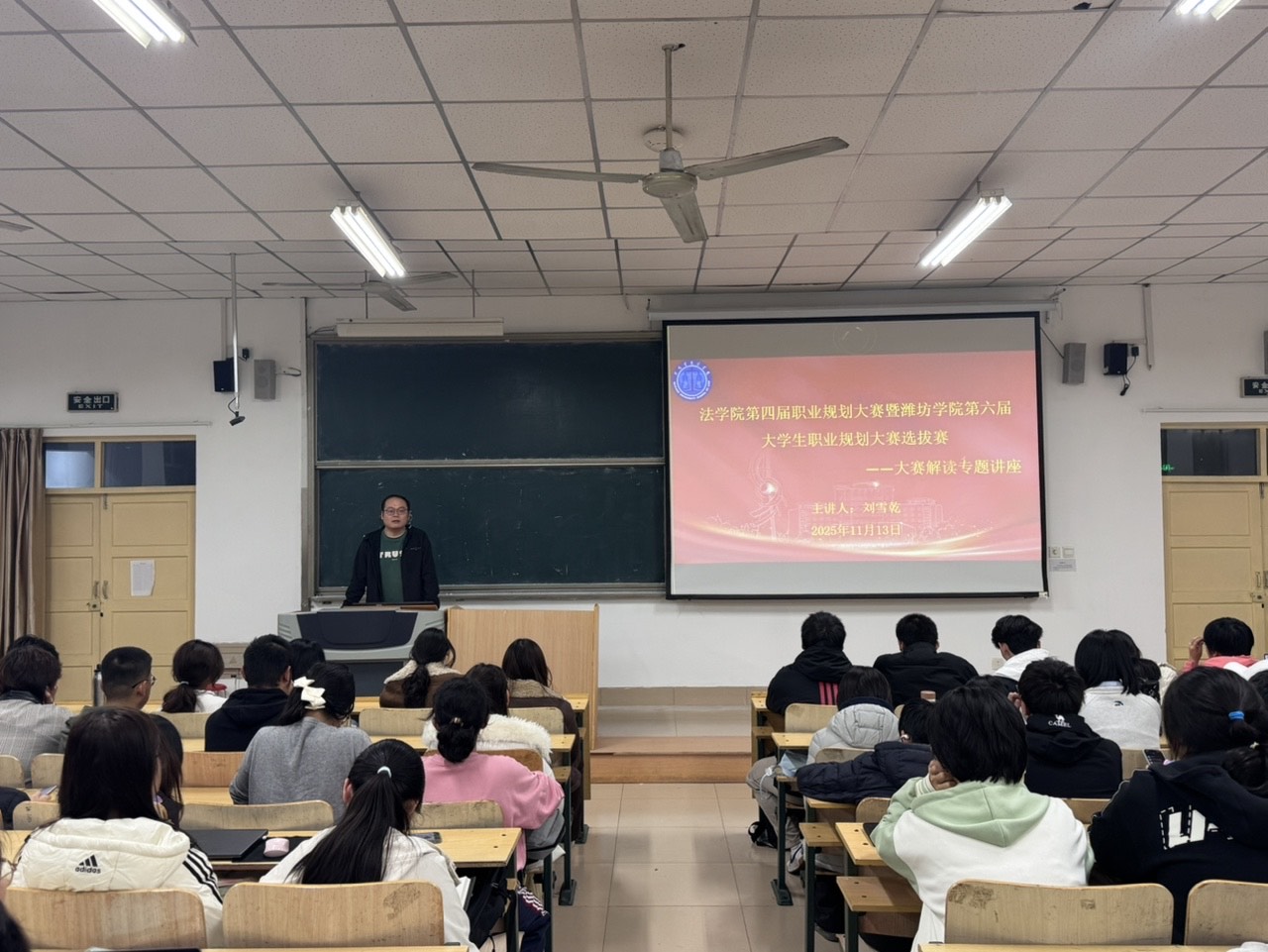 刘雪乾首先介绍了本次职业规划大赛的举办背景与重要意义。他强调,职业规划大赛不仅是检验学子职业素养与规划能力的重要平台,更是助力学生将个人发展与行业需求、社会发展相结合的有效途径,希望同学们能借助此次讲座找准方向、积极备赛。