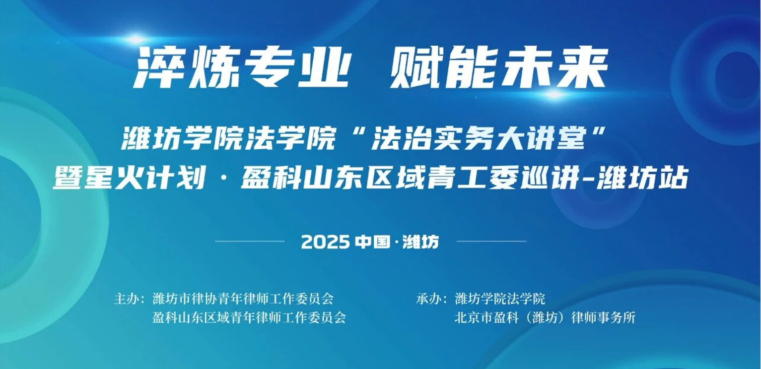 12月5日,潍坊学院法学院“法治实务大讲堂”暨星火计划·盈科山东区域青工委巡讲——潍坊站专题培训活动,在我院8314会议室举行。