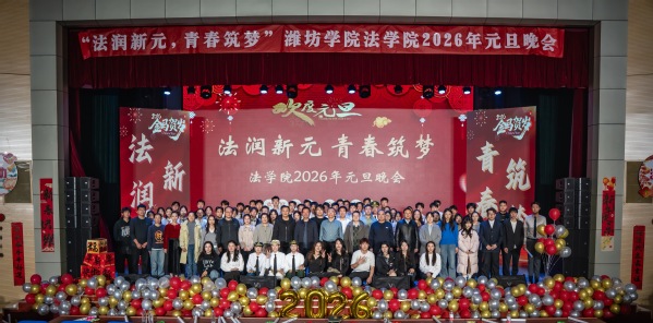 12月25日,“法润新元,青春筑梦”法学院学院2026年元旦晚会在图书馆报告厅举行。学校党委委员,副校长任立春,学生工作处副处长尚志杰,山东求是和信律师事务所、鸢都英合律师事务所、豪德律师事务所、众城清泰律师事务所、京师律师事务所、瀛鲁律师事务所、泽中律师事务所、盈科律师事务所的领导老师,我院党委书记刘德才、院长杜立聪、党委副书记王秀慧与我院师生、校友欢聚一堂,喜迎新年。