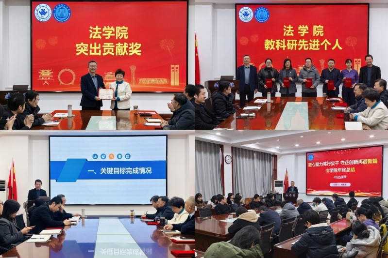 会议最后,学院党委书记刘德才作总结讲话。他从党的建设、教学科研、人才培养、社会服务、文体活动等多个维度,全面梳理和肯定了学院在2025年取得的主要成绩。同时,他也客观分析了当前学院发展过程中存在的短板与不足,强调要清醒认识面临的形势与任务。针对下一步工作,他强调,必须严守安全底线,扎实做好暑假及各项日常安全工作;要立足学院实际,紧密结合学校“1+4+N”发展战略,科学编制学院“十五五”规划;号召大家要以此次总结表彰为契机,勤学不辍,进一步增强责任感和使命感,充分利用寒假时间充电蓄能、谋划工作,以更加饱满的热情和更加务实的作风,共同谱写法学院发展新篇章。