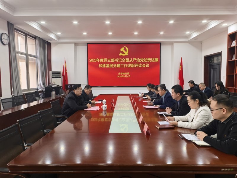 2月3日,法学院召开2025年度党支部书记全面从严治党述责述廉和抓基层党建工作述职会议。学校党委委员、副校长王成端列席指导并作总结讲话,学校离退休工作处副处长代宝刚列席会议。学院党委班子成员、各党支部书记、各科室负责人参加会议。会议由学院党委书记刘德才主持。