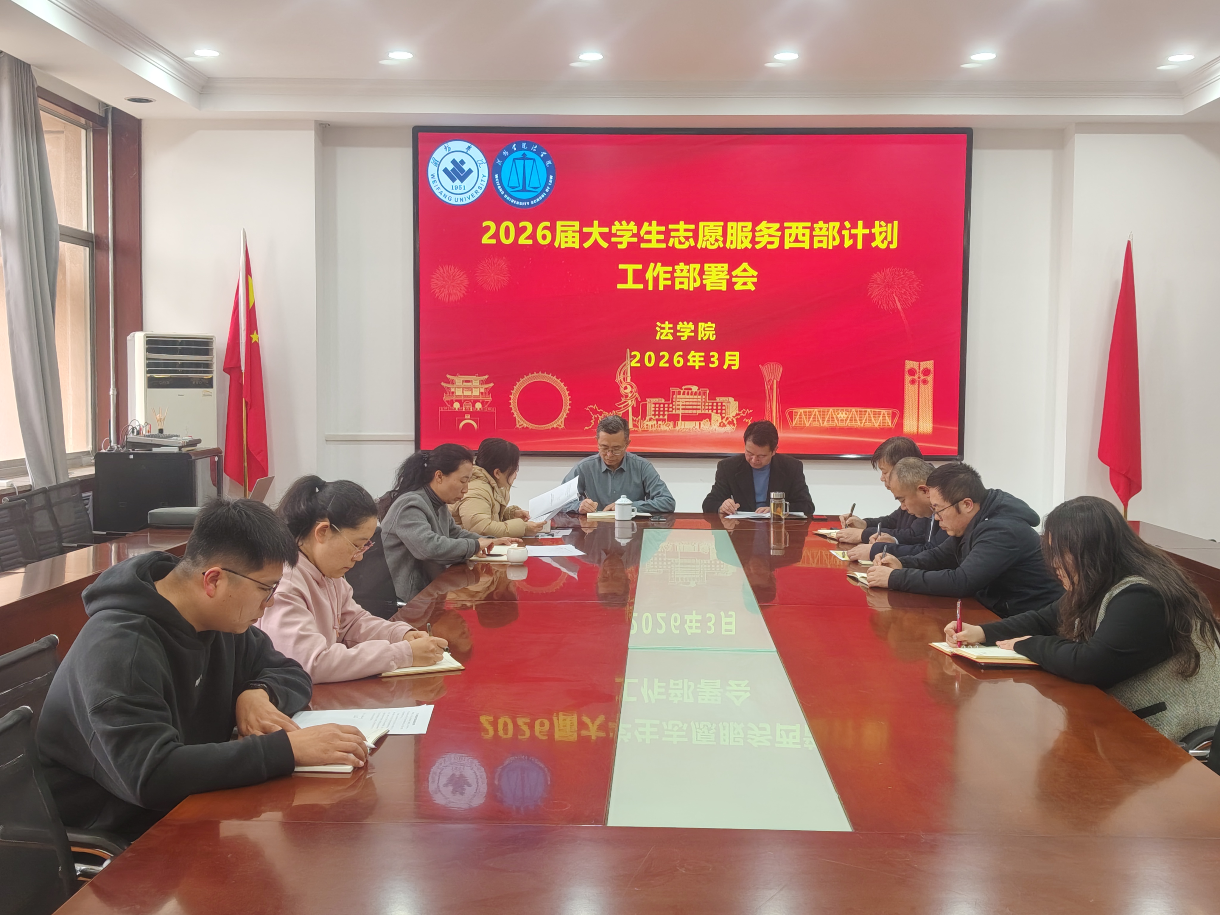 为深入贯彻落实国家关于引导和鼓励高校毕业生服务西部基层的战略部署,扎实推进我院大学生志愿服务西部计划工作,3月24日,我院在8314会议室召开2026届大学生志愿服务西部计划工作部署会。学院西部计划工作领导小组全体成员出席会议。
