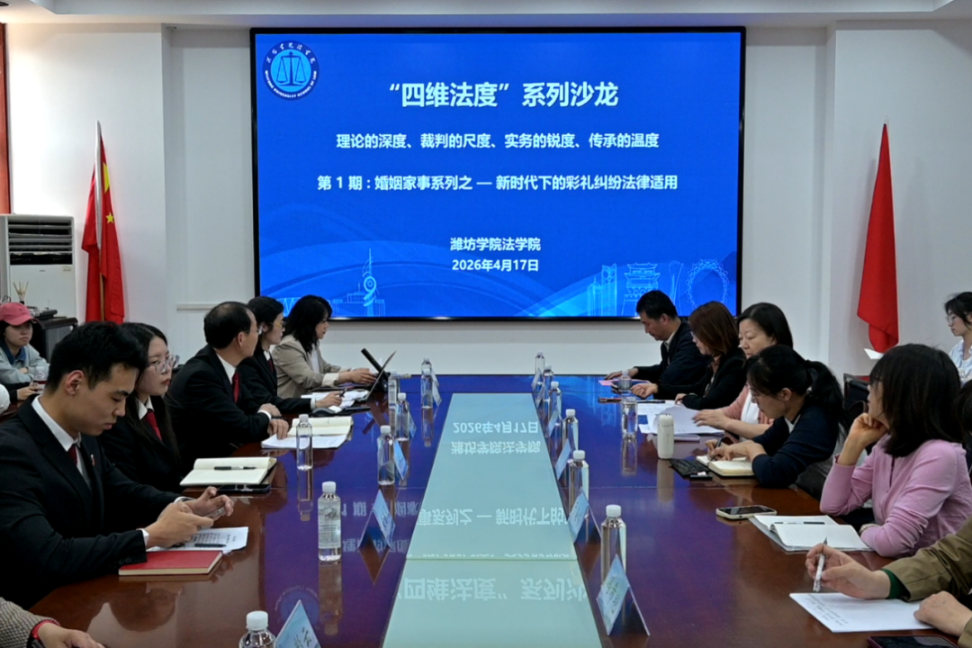 为深化婚姻家事法律领域的理论与实践融合,提升法律人才培养质量,近日,我院联合潍坊市中级人民法院举办“新时代下的彩礼纠纷法律适用”主题沙龙。本次活动由潍坊中院民一庭副庭长、四级高级法官李玉香担任主讲,法学院师生及律师代表参与活动。